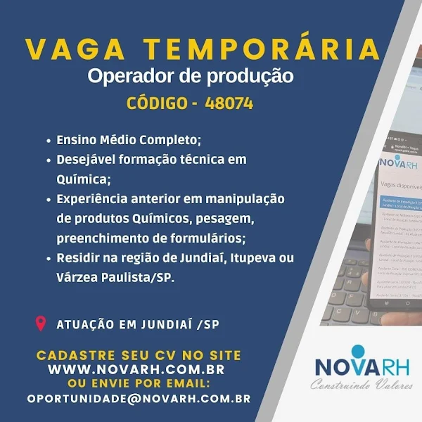 Agencia abre vaga para Operador de Produção (26/07/2022)