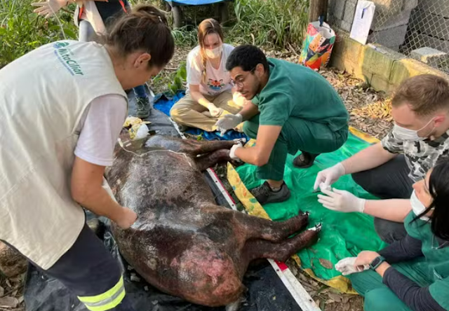 O veterinário informou que, embora as retinas estejam comprometidas, a visão pode ser recuperada com tratamento. A anta, encontrada debilitada perto de um canavial, estava em estado crítico e sob cuidados intensivos, incluindo o uso de um composto de babosa para aliviar a dor.