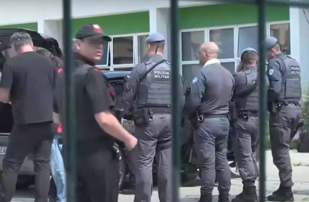O suspeito havia sido detido durante uma investigação de violência doméstica e estava sendo levado, junto com a vítima, para a DDM.